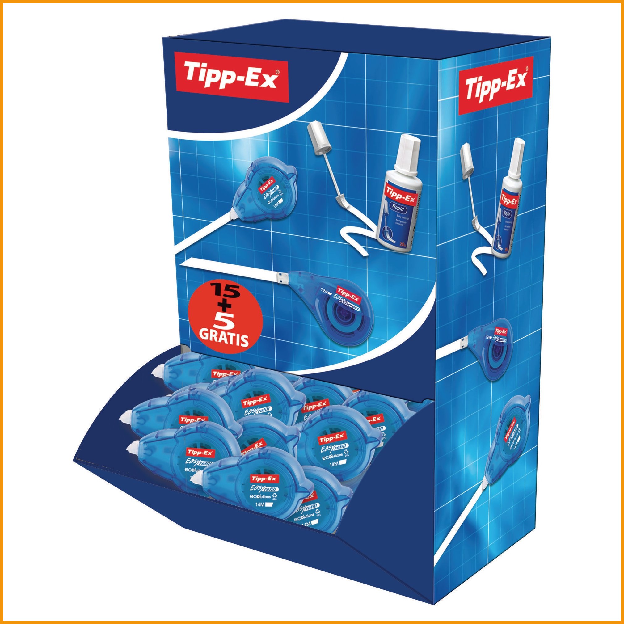 Säästöpakkaus! 15 + 5 rolleria kaupan päälle. tipp-ex easy -korjausrollerissa on erikoiskärki, jonka avulla korjaaminen on helppoa ja tarkkaa. kotelo on valmistettu 100- prosenttisesti kierrätetystä materiaalista, ja jäljellä olevan teipin määrä on selkeästi näkyvillä. rollerit ovat helposti saatavissa kätevästä pakkauksesta. Korjausrollerin minimitilaus 1. Tukkupakkauksessa 8.Korjausrolleri Tipp-ex easy 5mm x 14m säästöpakkaus on korkeatasoinen toimistotarvike, jonka verkkokauppatilauksen toimitus perille kestää 1-2 päivää. Huomaa, että hinnaltaan yli 140 € verkkokauppatilaus toimitetaan aina ilmaiseksi! Meiltä voit tilata laskulla ja ilman rekisteröitymistä.