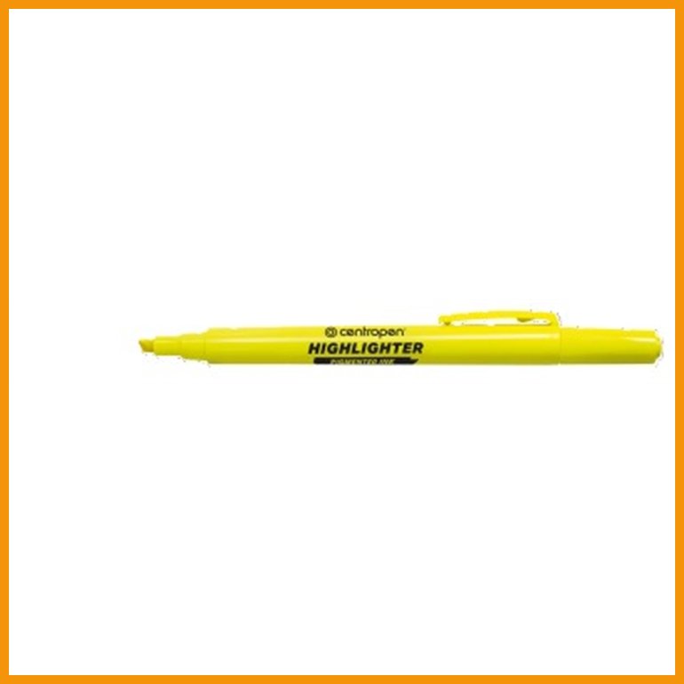 Centropen 8722 keltaisen korostuskynän vesipohjainen, myrkytön ja fluoresoiva pigmenttimuste soveltuu kaikenlaisten papereiden alleviivaamiseen ja korostamiseen. Muovisessa rungossa on kiinteä taskuklipsi.Musteen väri: keltainen