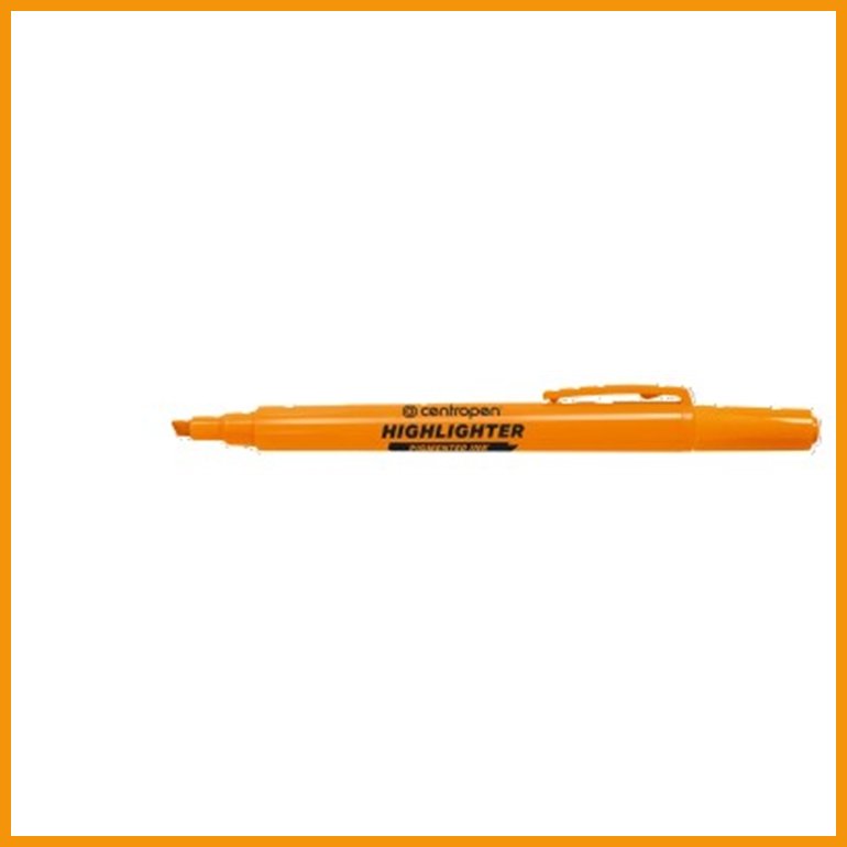 Centropen 8722 oranssin korostuskynän vesipohjainen, myrkytön ja fluoresoiva pigmenttimuste soveltuu kaikenlaisten papereiden alleviivaamiseen ja korostamiseen. Muovisessa rungossa on kiinteä taskuklipsi.Musteen väri: oranssi