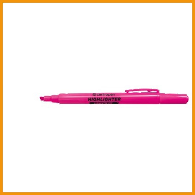 Centropen 8722 pinkin korostuskynän vesipohjainen, myrkytön ja fluoresoiva pigmenttimuste soveltuu kaikenlaisten papereiden alleviivaamiseen ja korostamiseen. Muovisessa rungossa on kiinteä taskuklipsi.Musteen väri: pinkki