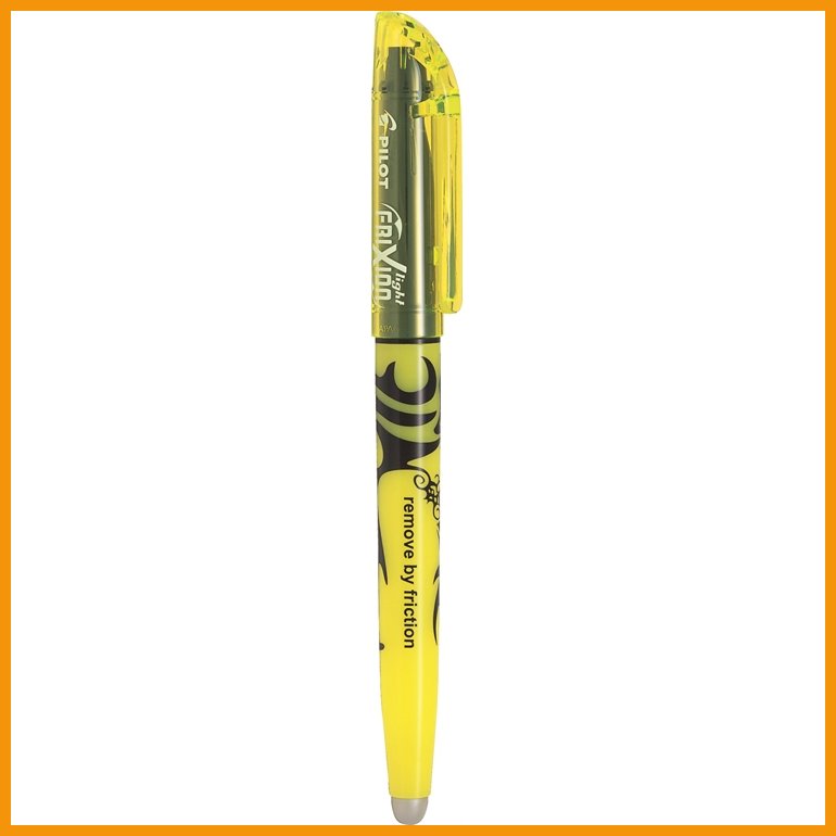 Mikään ei ole ikuista, eikä etenkään Pilot Frixion Light Erasable keltaisen korostuskynän jälki. Voit pyyhkiä kynän jäljen kitkan avulla, esimerkiksi kynän päässä olevalla kumilla hankaamalla. Muste irtoaa vielä pitkänkin ajan kuluttua. Kynän runko on musteen värinen.Kynä on valmistettu 50-prosenttisesti kierrätysmateriaaleista.
