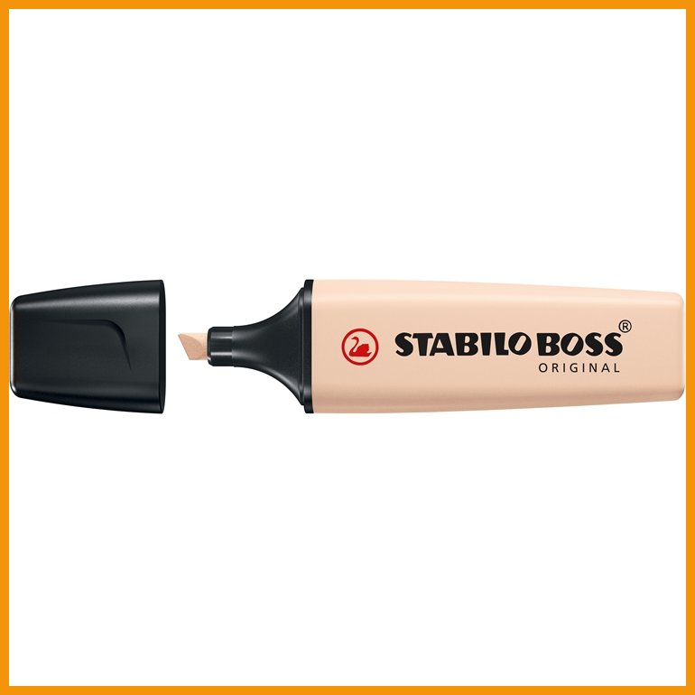 STABILO BOSS ORIGINAL on Euroopan ostetuin korostuskynä ja klassikko jo vuodesta 1971. Korkealaatuinen, vesipohjainen ja myrkytön muste juoksee kevyesti viistosta kärjestä, jonka kahdella eri kirjoitusleveydellä sekä alleviivaat että korostat - myös lämpöpaperille. Kynä ei kuivu neljään tuntiin, vaikka korkki unohtuisi auki.Musteen väri: beige