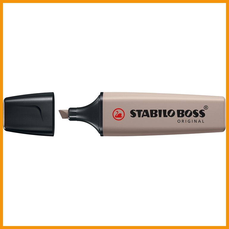 STABILO BOSS ORIGINAL on Euroopan ostetuin korostuskynä ja klassikko jo vuodesta 1971. Korkealaatuinen, vesipohjainen ja myrkytön muste juoksee kevyesti viistosta kärjestä, jonka kahdella eri kirjoitusleveydellä sekä alleviivaat että korostat - myös lämpöpaperille. Kynä ei kuivu neljään tuntiin, vaikka korkki unohtuisi auki.Musteen väri: lämmin harmaa