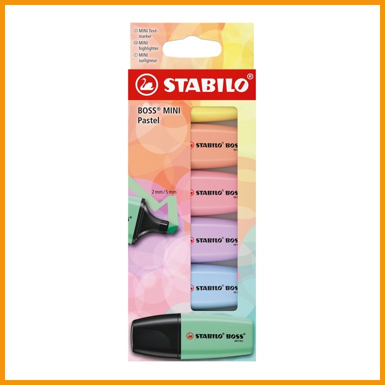 Korostuskynä STABILO BOSS MINI pastellivärilajitelma 6 kpl on upea toimistotuote, jonka verkkokaupan tilauksen toimitus kestää 1-2 päivää. Huomaa, että toimitus on ilmainen yli 140 € hintaisille verkkokauppa ostoksille! Meiltä voit tilata laskulla ja ilman rekisteröitymistä.