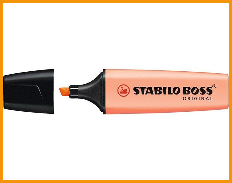Korostuskynä Stabilo Boss Original pastellinpersikka on mainio toimistotarvike, jonka toimituksen kesto on verkkokaupasta tilattuna 1-2 päivää. Tiedäthän, että ilmainen toimitus on kaikilla yli 140 € hintaisilla tilauksilla! Meiltä voit tilata laskulla ja ilman rekisteröitymistä.