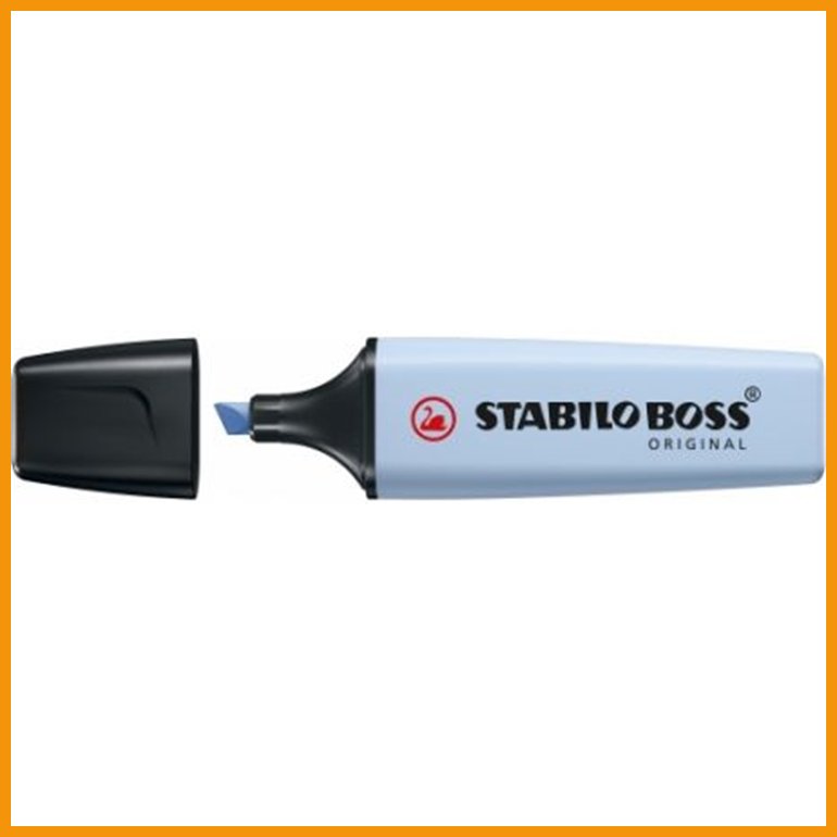 Stabilo Boss Original on Euroopan ostetuin korostuskynä ja klassikko jo vuodesta 1971. Korkealaatuinen, vesipohjainen ja myrkytön muste juoksee kevyesti viistosta kärjestä, jonka kahdella eri kirjoitusleveydellä sekä alleviivaat että korostat - myös lämpöpaperille. Kynä ei kuivu neljään tuntiin, vaikka korkki unohtuisi auki. Mustesäiliö on uudelleentäytettävä.Musteen väri: pastellinsininen