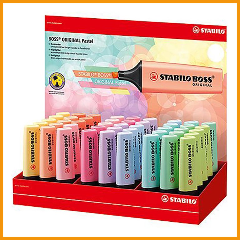 Korostuskynä Stabilo Boss Original pastelliväridisplay 45kpl on loistava toimistotuote, joka toimitetaan heti kun sitä saapuu varastoon (1-2 viikkoa). Tiedäthän, että hinnaltaan yli 140 € verkkokauppatilaus toimitetaan aina ilmaiseksi! Meiltä voit tilata laskulla ja ilman rekisteröitymistä.