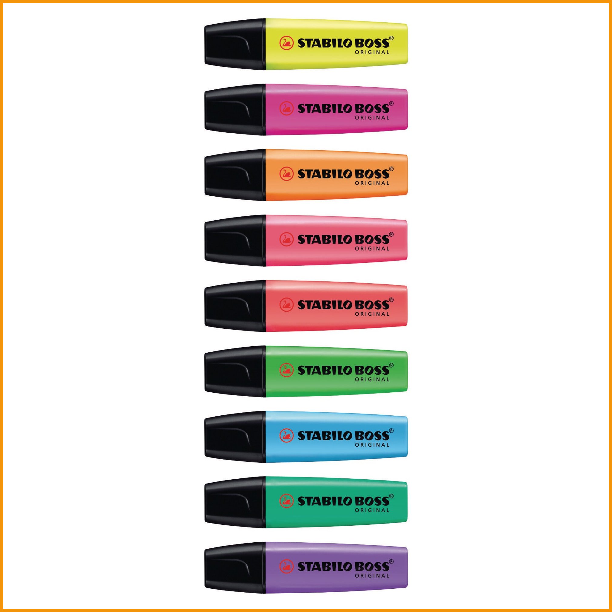 Hinta 14,82€ / 6 kplStabilo boss on lähes neljän vuosikymmenen ajan ollut tiennäyttäjä korostuskynissä. korostuskynällä nostat esiin tekstin avainsanat ja -virkkeet. kynä sopii kaikille papereille, faxeille, itsejäljentäville papereille ja mustesuihkutulosteille.