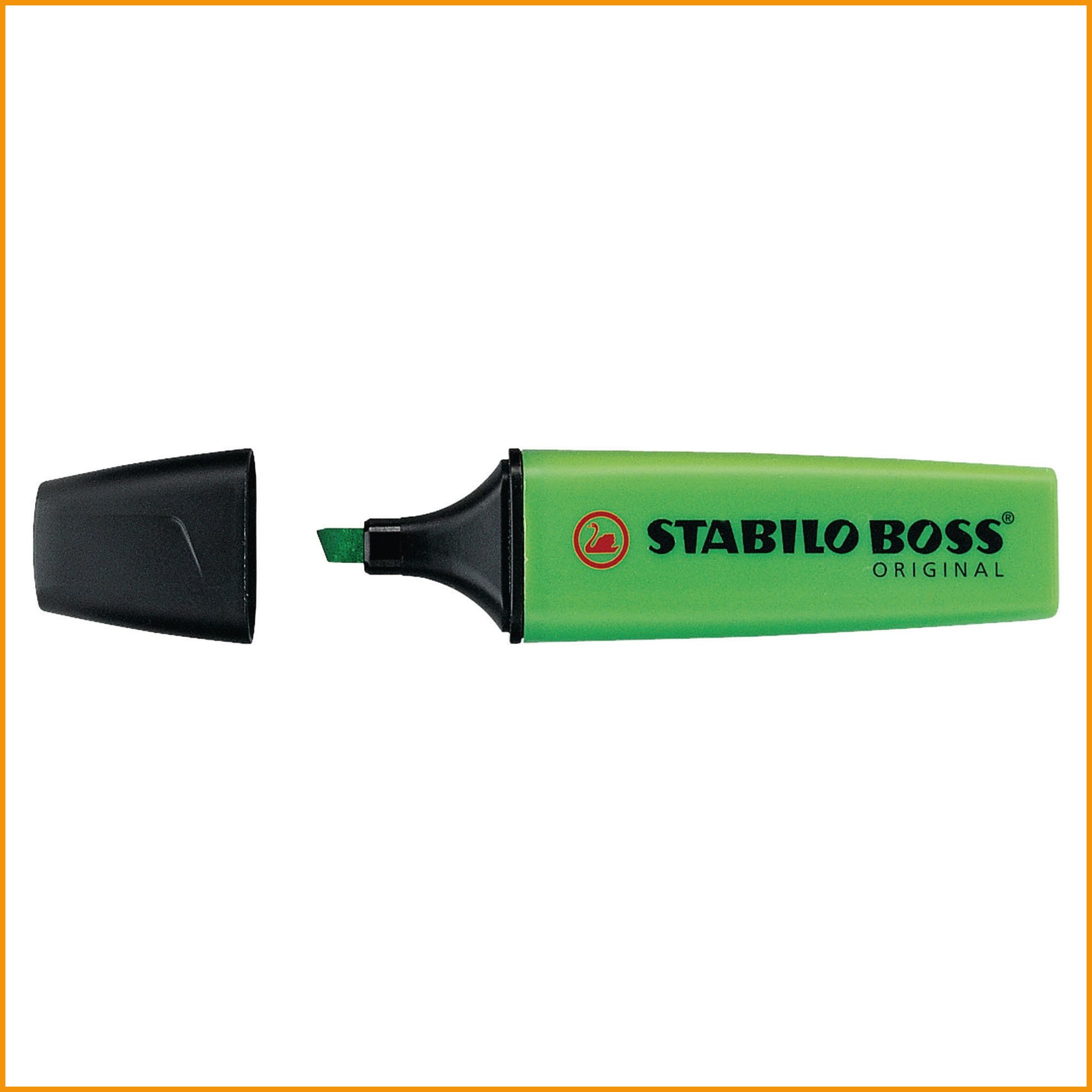 Stabilo boss on lähes neljän vuosikymmenen ajan ollut tiennäyttäjä vihreissä korostuskynissä. korostuskynällä nostat esiin tekstin avainsanat ja -virkkeet. kynä sopii kaikille papereille, faxeille, itsejäljentäville papereille ja mustesuihkutulosteille. nopeasti kuivuva, myrkytön muste ei sotke tulosteita eikä käsinkirjoitettua tekstiä. viisto kärki, viivan leveys 2 -5 mm. Korostuskynien minimitilaus 1 paketti = 10 kpl. Tukkupakkauksessa 50 kpl.Korostuskynä Stabilo boss viisto 2-5mm vihreä on loistava toimistotuote, jonka verkkokauppatilauksen toimitus perille kestää 1-2 päivää. Tiedäthän, että ilmainen toimitus on kaikilla yli 140 € hintaisilla tilauksilla! Meiltä voit tilata laskulla ja ilman rekisteröitymistä.