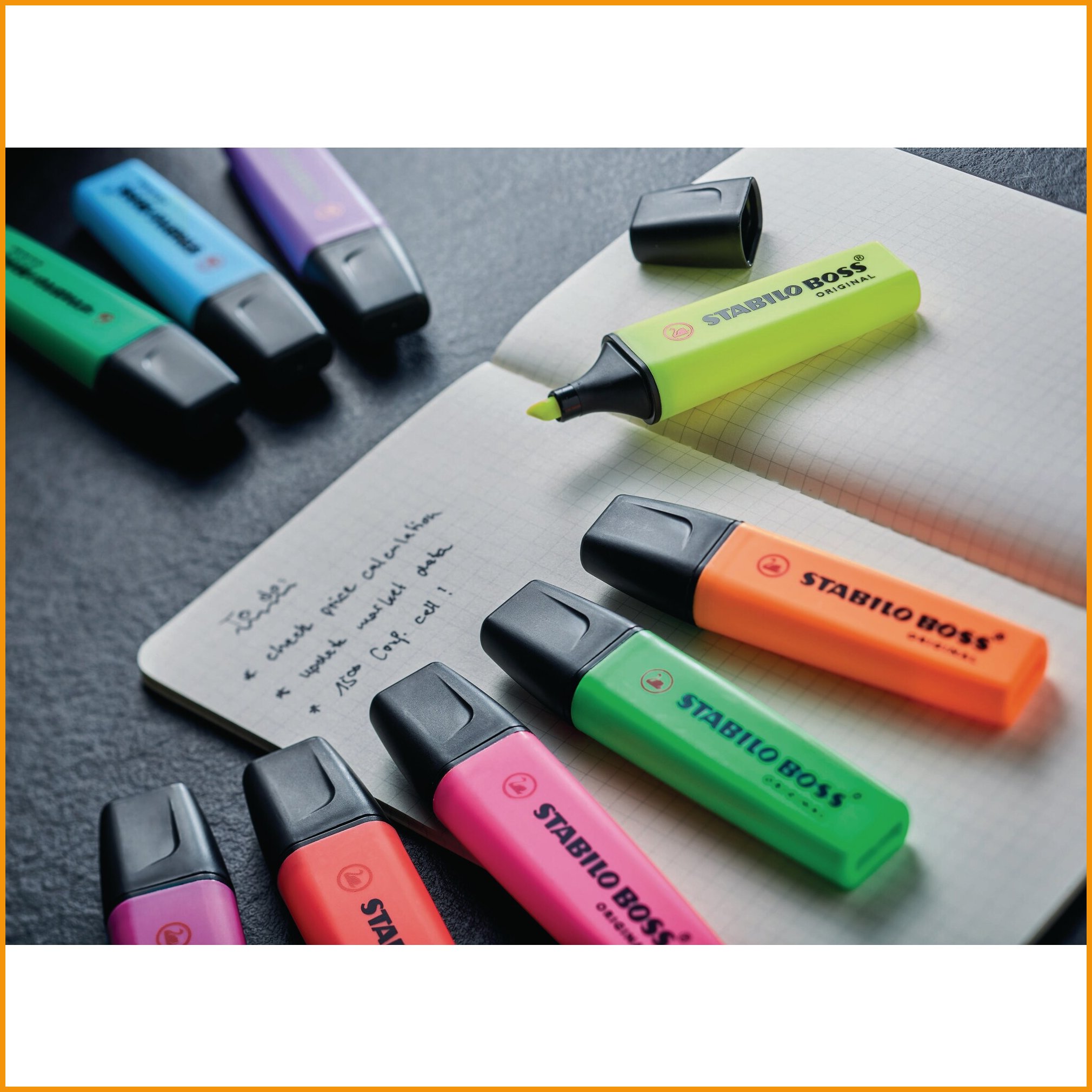 Hinta 15,18€ / 8 kplStabilo boss on lähes neljän vuosikymmenen ajan ollut tiennäyttäjä korostuskynissä. korostuskynällä nostat esiin tekstin avainsanat ja -virkkeet. kynä sopii kaikille papereille, faxeille, itsejäljentäville papereille ja mustesuihkutulosteille.