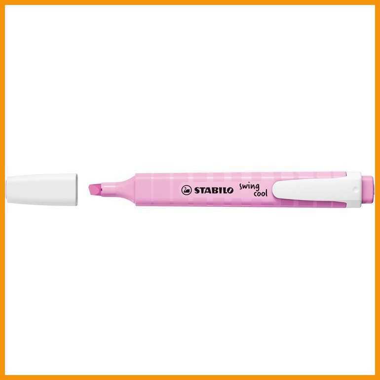 STABILO swing cool on tavanomaista korostuskynää kapeampi ja sirompi. Korkealaatuinen, vesipohjainen ja myrkytön muste juoksee kevyesti viistosta kärjestä, jonka kahdella eri kirjoitusleveydellä sekä alleviivaat että korostat. Kynä ei kuivu neljään tuntiin, vaikka ventiloitu korkki unohtuisi auki. Kynässä on myös taskuklipsi.Musteen väri: jäinen fuksia