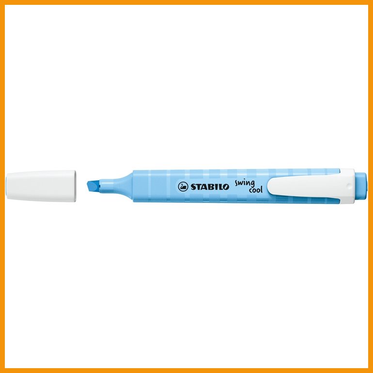 STABILO swing cool on tavanomaista korostuskynää kapeampi ja sirompi. Korkealaatuinen, vesipohjainen ja myrkytön muste juoksee kevyesti viistosta kärjestä, jonka kahdella eri kirjoitusleveydellä sekä alleviivaat että korostat. Kynä ei kuivu neljään tuntiin, vaikka ventiloitu korkki unohtuisi auki. Kynässä on myös taskuklipsi.Musteen väri: tuulensininen