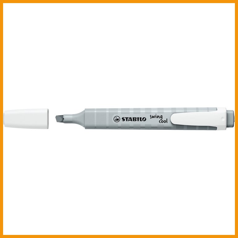 STABILO swing cool on tavanomaista korostuskynää kapeampi ja sirompi. Korkealaatuinen, vesipohjainen ja myrkytön muste juoksee kevyesti viistosta kärjestä, jonka kahdella eri kirjoitusleveydellä sekä alleviivaat että korostat. Kynä ei kuivu neljään tuntiin, vaikka ventiloitu korkki unohtuisi auki. Kynässä on myös taskuklipsi.Musteen väri: usvainen harmaa