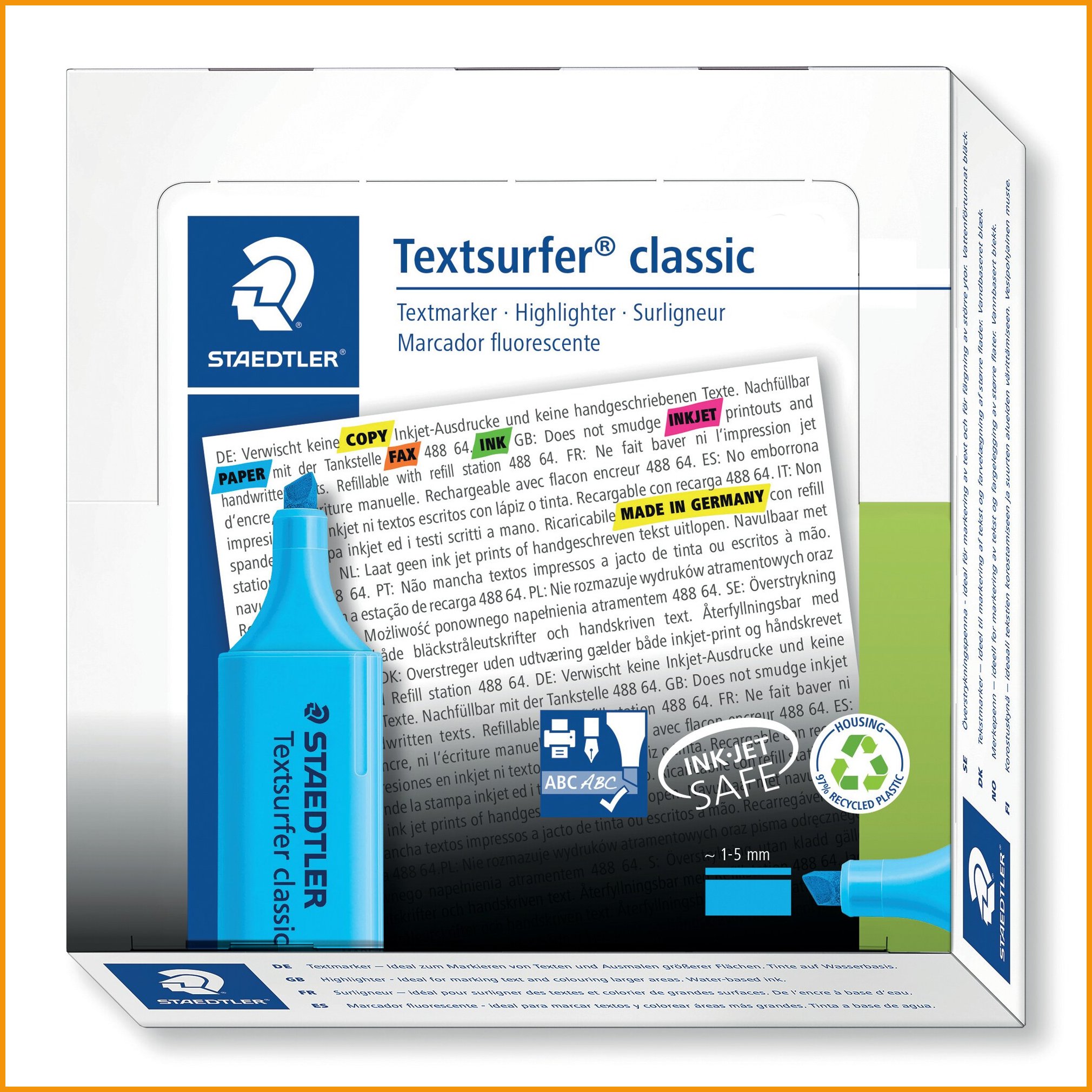 Hinta 1,25€ / kplStaedtler textsurfer 364 -korostuskynällä nostat esiin tekstin avainsanat ja -virkkeet. kynä sopii kaikille papereille, faxeille, itsejäljentäville papereille ja mustesuihkutulosteille. nopeasti kuivuva muste ei sotke tulosteita eikä käsinkirjoitettua ...