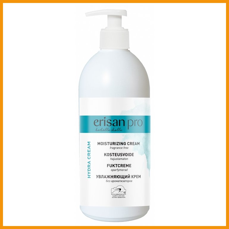 Erisan Pro Hydra Cream on hajusteeton, myös kuivalle ja herkälle iholle päivittäin käytettäväksi soveltuva kosteusvoide. Kevyt ja tahraamaton, ihoa suojaava kosteusvoide levittyy helposti ja sekä pehmentää, kosteuttaa että hoitaa ihoa. Tuote soveltuu erinomaisesti ammattikäyttöön ja kaikille ihotyypeille.Hellävaraisella tuotteella on Allergia-, Iho- ja Astmaliiton tunnus ja pohjoismainen Joutsenmerkki.