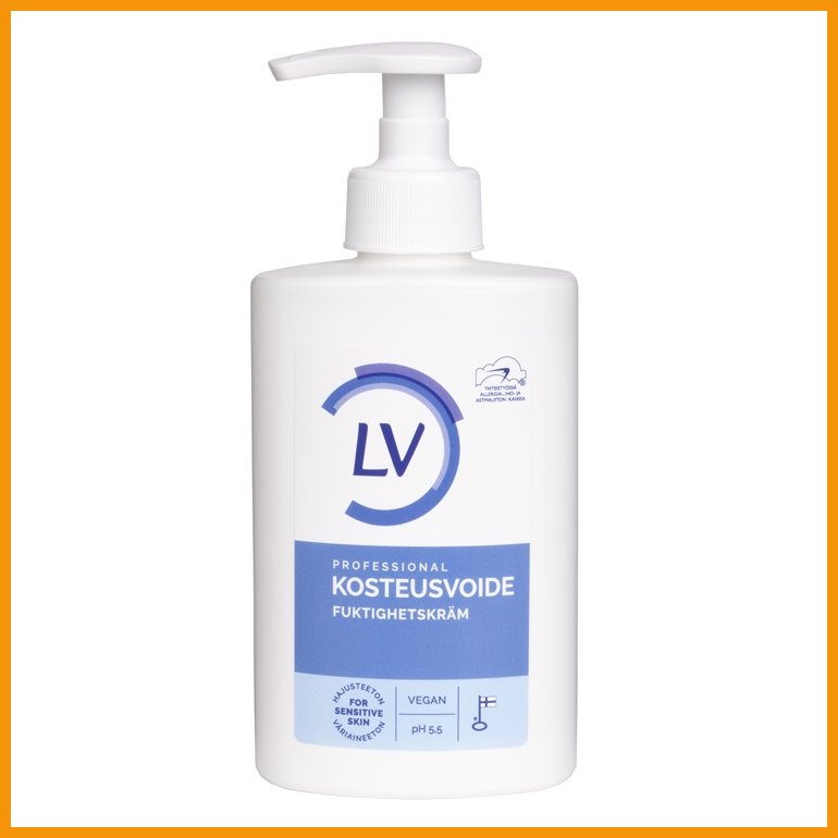 LV Kosteusvoide on hajusteeton ja väriaineeton tuote kuivan ja herkän ihon kosteuttamiseen ja hoitoon. Kaikille ihotyypeille ja erityisesti herkkäihoisille sopiva voide säilyttää ihon luonnollisen pehmeyden ja sopii siten hyvin sekä käsille että koko vartalolle.Kotimaisella ja hellävaraisella tuotteella on Allergia-, Iho- ja Astmaliiton tunnus ja kotimainen Avainlippu.