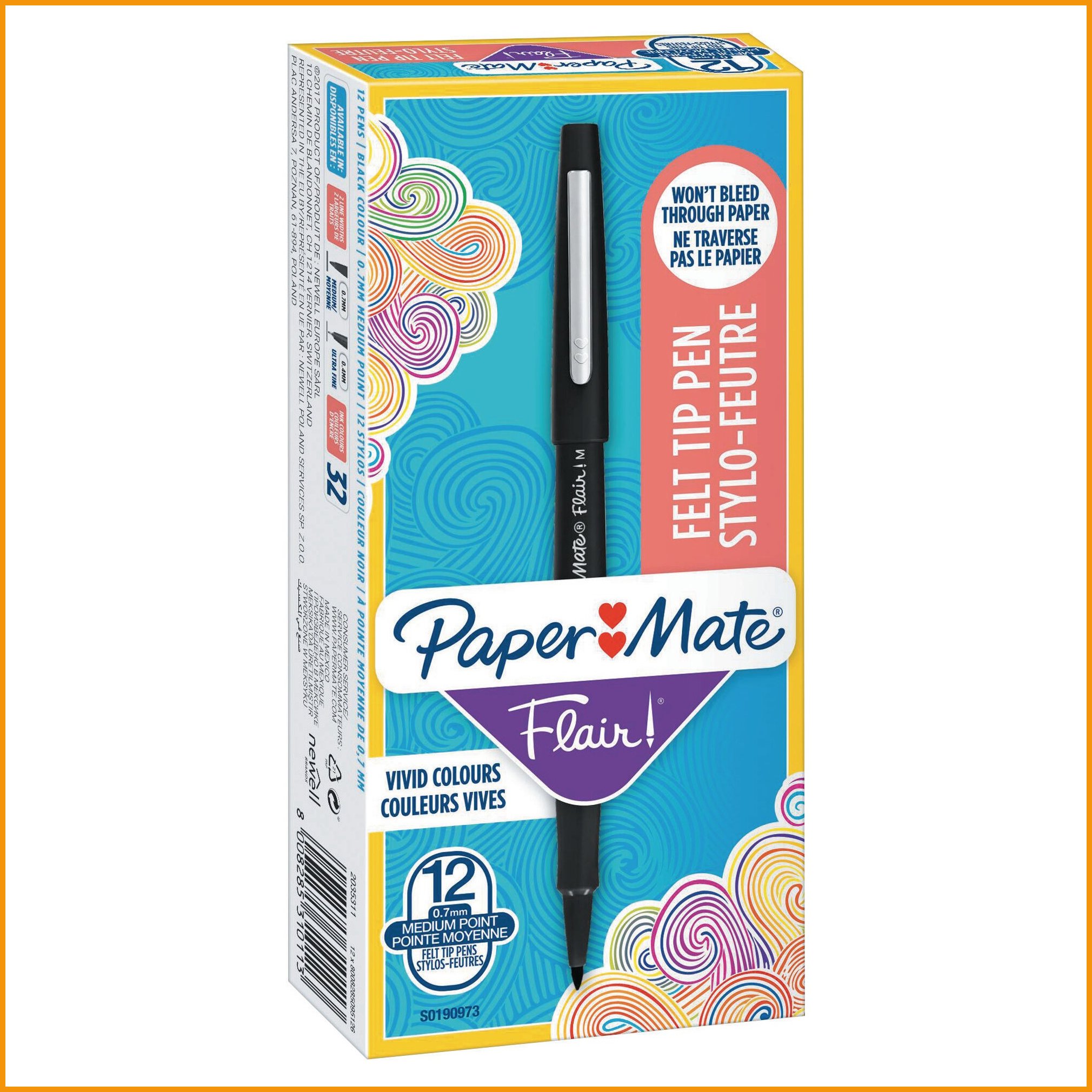 Papermate flair on erinomainen kuitukärkikynä yleiskäyttöön. kynän kestävä nailonkärki, kirkas väri ja muotoiltu otealue tekevät sillä kirjoittamisesta nautinnollista. "cap-off"-musteen ansiosta korkki voi olla auki jopa 24 tuntia musteen kuivumatta. viivan leveys 0,8 mm. myyntierä: 1 pkt (12 kpl) / 12 pkt.