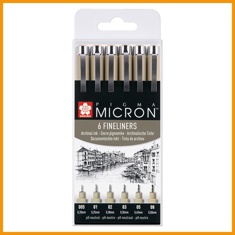Sakura Pigma Micron on etenkin piirtäjien ja kuvittajien suosima kuitukärkikynä, joka soveltuu niin tekniseen kuin taiteelliseenkin tekemiseen. Sillä voit piirtää ja kirjoittaa lähes kaikenlaisille paperi- ja huokoisille pinnoille - myös kuultopaperille.Patentoitu erikoispigmenttimuste on arkistokelpoista, happovapaata ja sekä veden- että valonkestävää eikä vuoda paperin läpi.