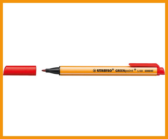 Stabilo Greenpoint -kuitukärkikynä soveltuu niin kevyeen kirjoittamiseen kuin piirtämiseen ja korostamiseenkin. Kynässä on leveä ja kestävä kärki ja taskuklipsi. Kynä ei kuivu 24 tuntiin, vaikka unohtaisit korkin auki. Korkki on ventiloitu.Musteen väri: punainen