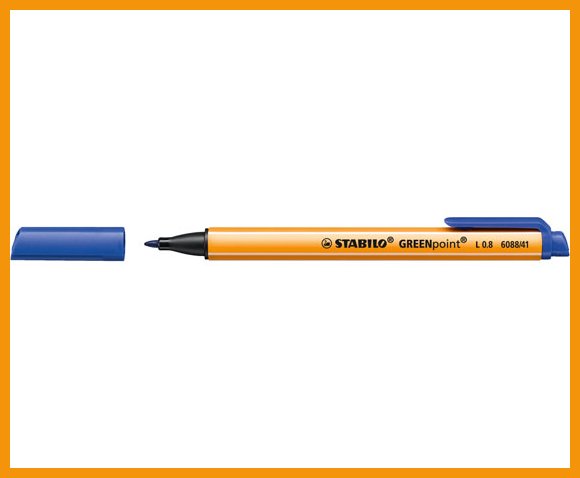 Stabilo Greenpoint -kuitukärkikynä soveltuu niin kevyeen kirjoittamiseen kuin piirtämiseen ja korostamiseenkin. Kynässä on leveä ja kestävä kärki ja taskuklipsi. Kynä ei kuivu 24 tuntiin, vaikka unohtaisit korkin auki. Korkki on ventiloitu.Musteen väri: sininen