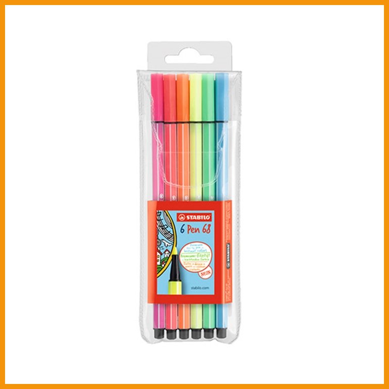 STABILO Pen 68 Neon -lajitelmassa on kuusi niin kirjoittamiseen, piirtämiseen kuin vesivärikäyttöönkin soveltuvaa kuitukärkikynää. Vesipohjainen ja hajuton muste saa aikaan kirkkaat värit, ja kynän erityisen vankka kärki ei taivu tai rispaannu liian helposti. Kynä ei kuivu 24 tuntiin, vaikka unohtaisit korkin auki. Korkki on ventiloitu.ISCC PLUS -sertifioidun kynän runko ja korkki on valmistettu vähintään 90-prosenttisesti biopohjaisesta muovista, jota tuotetaan uusiutuvista raaka-aineista.