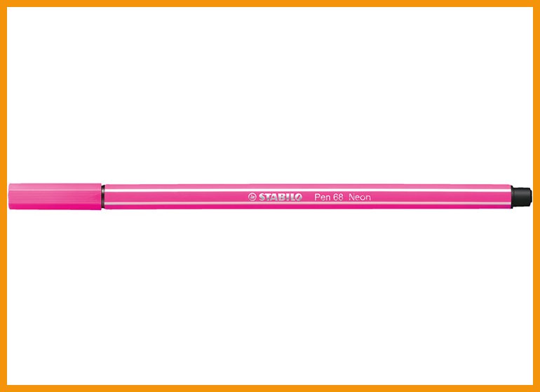 Stabilo Pen 68 on kuitukärkikynä, joka soveltuu niin kirjoittamiseen, piirtämiseen kuin vesivärikäyttöönkin. Vesipohjainen ja hajuton muste saa aikaan kirkkaat värit, ja kynän erityisen vankka kärki ei taivu tai rispaannu liian helposti. Kynä ei kuivu 24 tuntiin, vaikka unohtaisit korkin auki. Korkki on ventiloitu.Musteen väri: neonpinkki