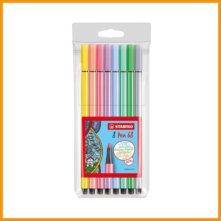 STABILO Pen 68 Pastel -lajitelmassa on kuusi niin kirjoittamiseen, piirtämiseen kuin vesivärikäyttöönkin soveltuvaa kuitukärkikynää. Vesipohjainen ja hajuton muste saa aikaan kirkkaat värit, ja kynän erityisen vankka kärki ei taivu tai rispaannu liian helposti. Kynä ei kuivu 24 tuntiin, vaikka unohtaisit korkin auki. Korkki on ventiloitu.ISCC PLUS -sertifioidun kynän runko ja korkki on valmistettu vähintään 90-prosenttisesti biopohjaisesta muovista, jota tuotetaan uusiutuvista raaka-aineista.