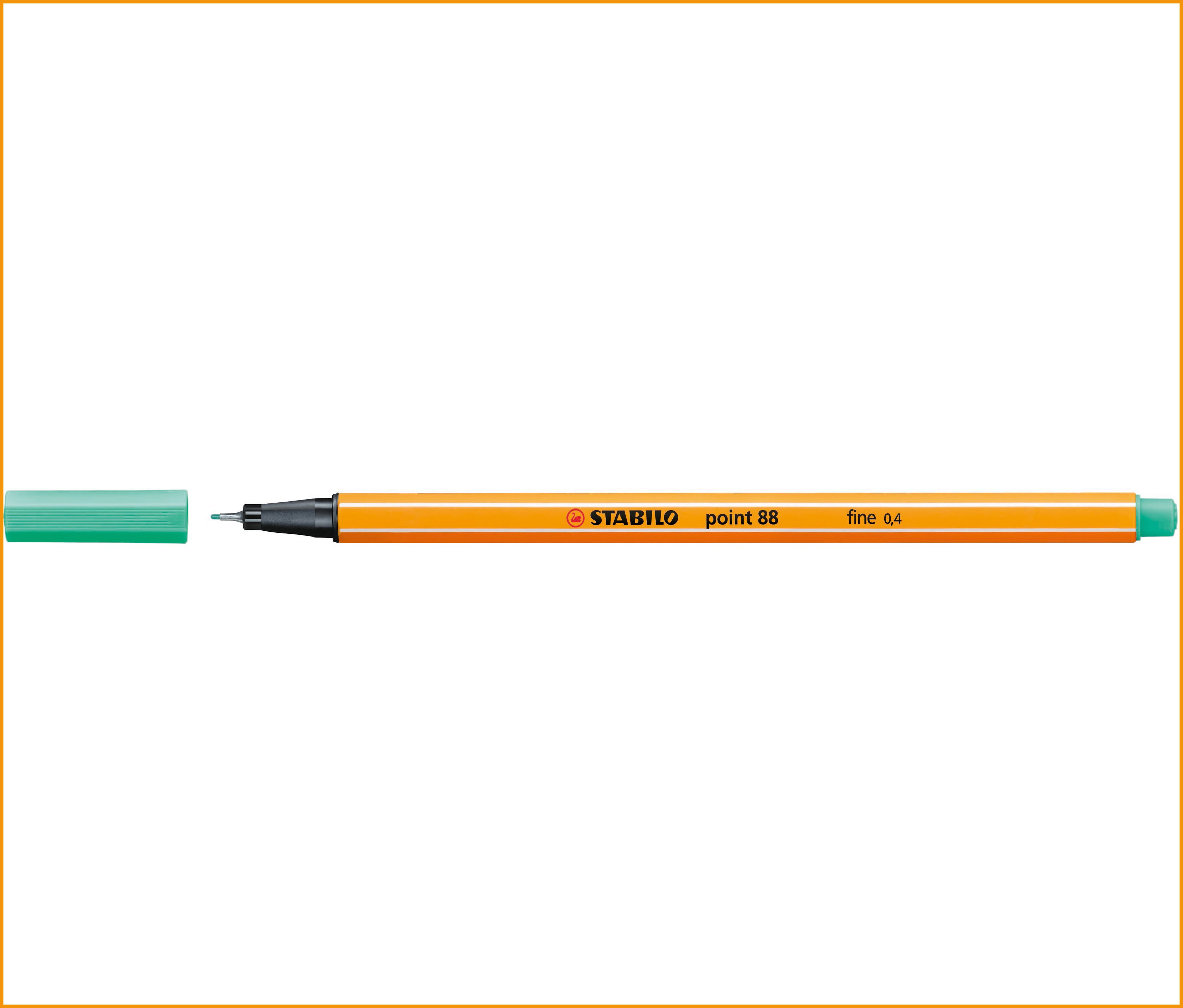 STABILO Point 88 on ajaton klassikko, jonka valkoiset raidat keltaisella kuusikulmaisella rungolla tunnistat varmasti. Kuitukärkikynä soveltuu yhtä hyvin niin kirjoittamiseen kuin piirtämiseenkin. Metalliseen vaippaan kiedottu kapea ja tarkka kärki sopii hyvin mm. viivottimien kanssa toimimiseen. Muste on vesiliukoista, ja kynä ei kuivu 2-3 päivään, vaikka unohtaisit korkin auki. Korkki on ventiloitu.ISCC PLUS -sertifioidun kynän runko ja korkki on valmistettu vähintään 90-prosenttisesti biopohjaisesta muovista, jota tuotetaan uusiutuvista raaka-aineista.