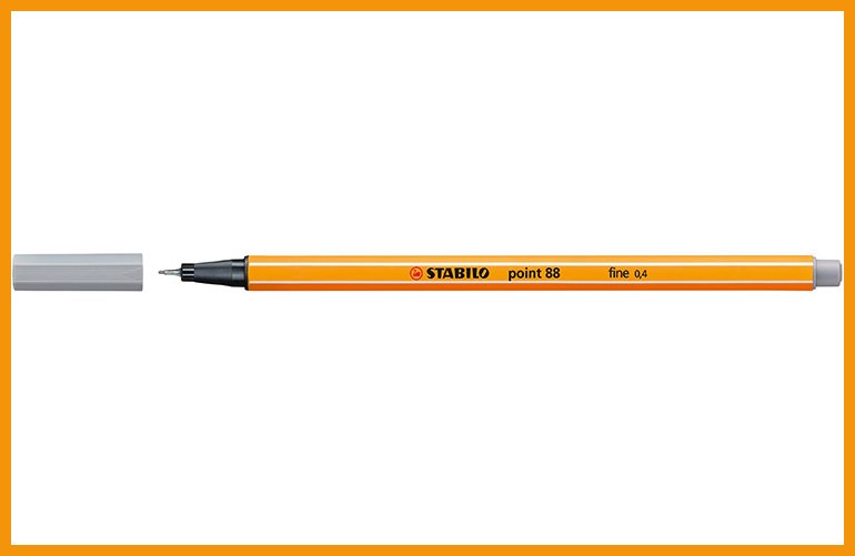 STABILO Point 88 on ajaton klassikko, jonka valkoiset raidat keltaisella kuusikulmaisella rungolla tunnistat varmasti. Kuitukärkikynä soveltuu yhtä hyvin niin kirjoittamiseen kuin piirtämiseenkin. Metalliseen vaippaan kiedottu kapea ja tarkka kärki sopii hyvin mm. viivottimien kanssa toimimiseen. Muste on vesiliukoista, ja kynä ei kuivu 2-3 päivään, vaikka unohtaisit korkin auki. Korkki on ventiloitu.ISCC PLUS -sertifioidun kynän runko ja korkki on valmistettu vähintään 90-prosenttisesti biopohjaisesta muovista, jota tuotetaan uusiutuvista raaka-aineista.
