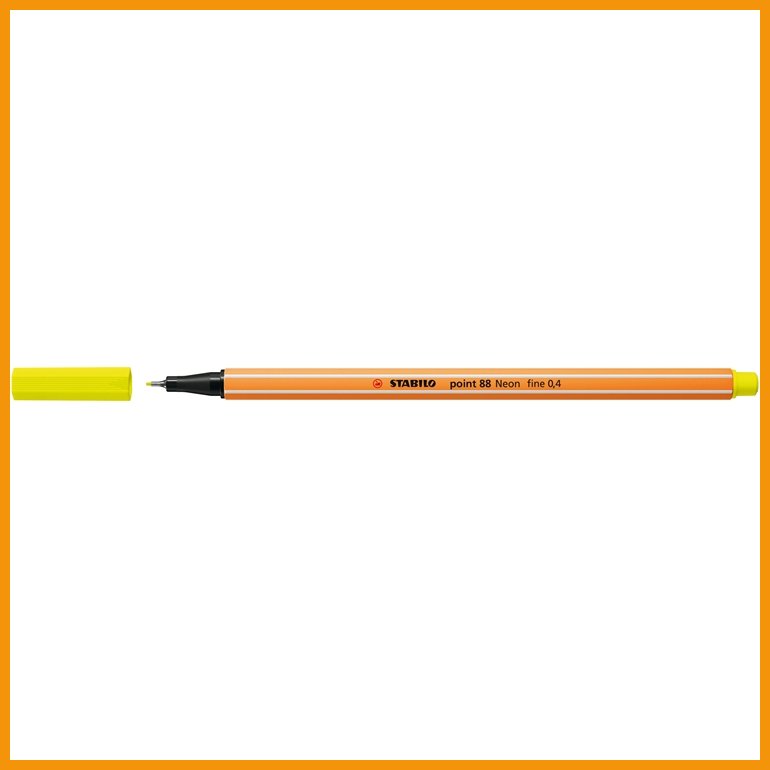 STABILO Point 88 on ajaton klassikko, jonka valkoiset raidat keltaisella kuusikulmaisella rungolla tunnistat varmasti. Kuitukärkikynä soveltuu yhtä hyvin niin kirjoittamiseen kuin piirtämiseenkin. Metalliseen vaippaan kiedottu kapea ja tarkka kärki sopii hyvin mm. viivottimien kanssa toimimiseen. Muste on vesiliukoista, ja kynä ei kuivu 2-3 päivään, vaikka unohtaisit korkin auki. Korkki on ventiloitu.ISCC PLUS -sertifioidun kynän runko ja korkki on valmistettu vähintään 90-prosenttisesti biopohjaisesta muovista, jota tuotetaan uusiutuvista raaka-aineista.
