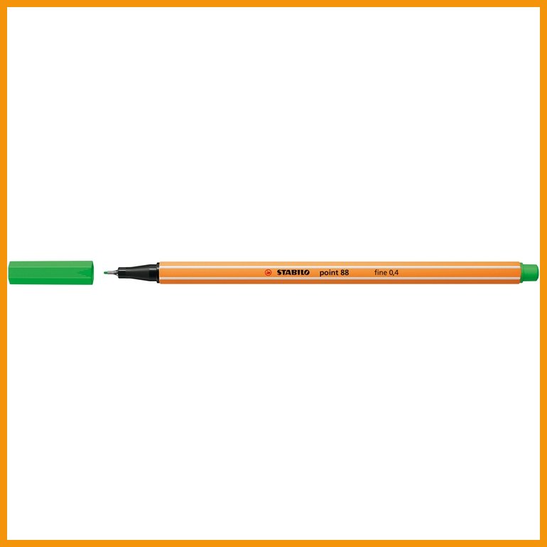 STABILO Point 88 on ajaton klassikko, jonka valkoiset raidat keltaisella kuusikulmaisella rungolla tunnistat varmasti. Kuitukärkikynä soveltuu yhtä hyvin niin kirjoittamiseen kuin piirtämiseenkin. Metalliseen vaippaan kiedottu kapea ja tarkka kärki sopii hyvin mm. viivottimien kanssa toimimiseen. Muste on vesiliukoista, ja kynä ei kuivu 2-3 päivään, vaikka unohtaisit korkin auki. Korkki on ventiloitu.ISCC PLUS -sertifioidun kynän runko ja korkki on valmistettu vähintään 90-prosenttisesti biopohjaisesta muovista, jota tuotetaan uusiutuvista raaka-aineista.