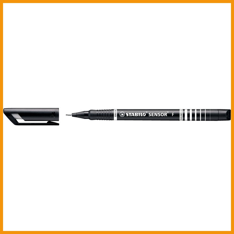 Stabilo Sensor -kuitukärkikynässä on uniikki, ohut ja metallivahvisteinen joustokärki, joka mukautuu erilaisiin kirjoitustyyleihin ja tekee kirjoittamisesta rentoa. Ei enää vaaraa kärjen taittumisesta liian innokkaasti touhutessa!Vesiliukoinen ja tahraamaton muste tekee kynästä sopivan myös vasenkätisille. Kynä ei kuivu 2-3 päivään, vaikka unohtaisit klipsillä varustetun korkin auki.