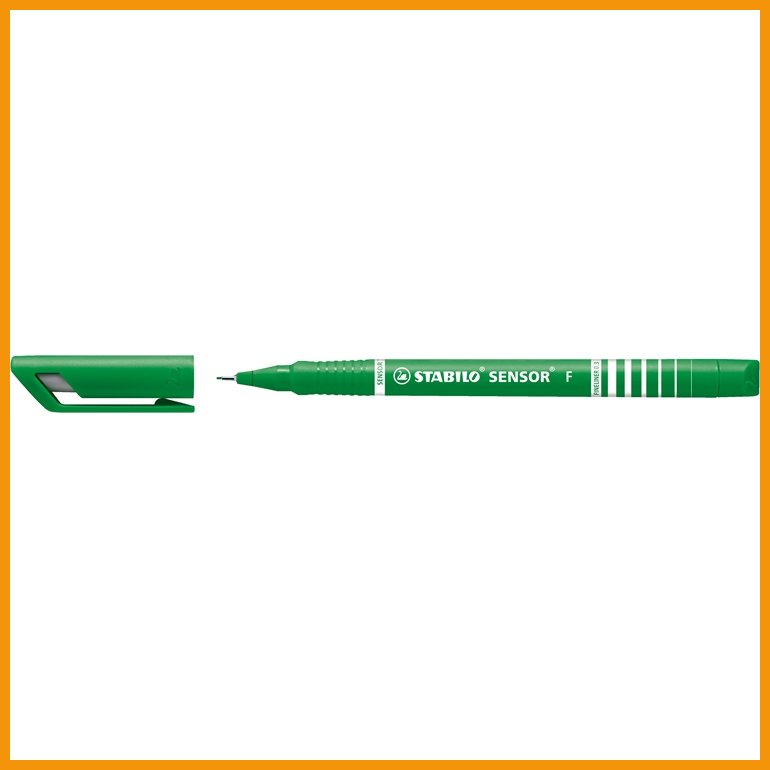 Stabilo Sensor -kuitukärkikynässä on uniikki, ohut ja metallivahvisteinen joustokärki, joka mukautuu erilaisiin kirjoitustyyleihin ja tekee kirjoittamisesta rentoa. Ei enää vaaraa kärjen taittumisesta liian innokkaasti touhutessa! Vesiliukoinen ja tahraamaton muste tekee kynästä sopivan myös vasenkätisille. Kynä ei kuivu 2-3 päivään, vaikka unohtaisit klipsillä varustetun korkin auki.Musteen väri: vihreä