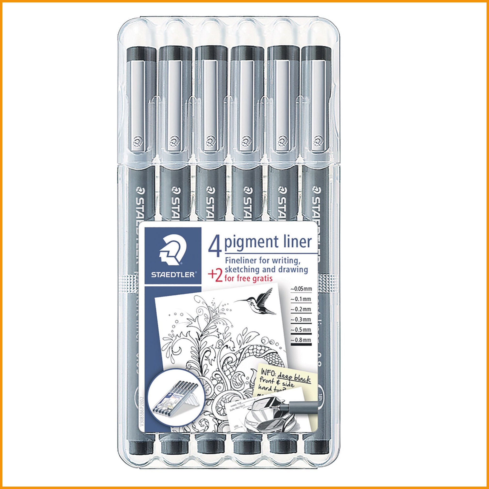 Kuitukärkikynä Staedtler pigment liner 308 musta 6kpl tuotetiedot