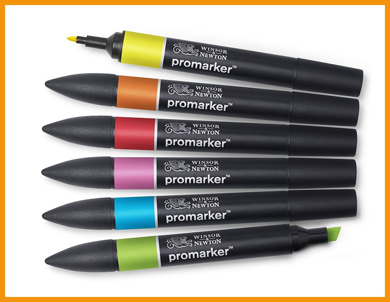 Winsor & Newton Promarker on kaksipäinen kuitukärkikynä kuvittamiseen, sarjakuvataiteeseen ja muuhun luovaan työskentelyyn. Kynän tasaista jälkeä tekevä alkoholipohjainen ja myrkytön muste on läpikuultavaa, mutta voit piirtää useampia viivoja päällekkäin voimakkaamman värin aikaansaamiseksi.Musteen väri: mandariini, syaani, kirkas vihreä, pinkki, punainen ja keltainen