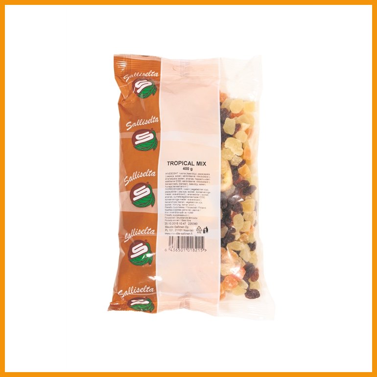 Kuivahedelmäsekoitus Mauste-Sallinen Tropical Mix 400 g hinta 5,86€