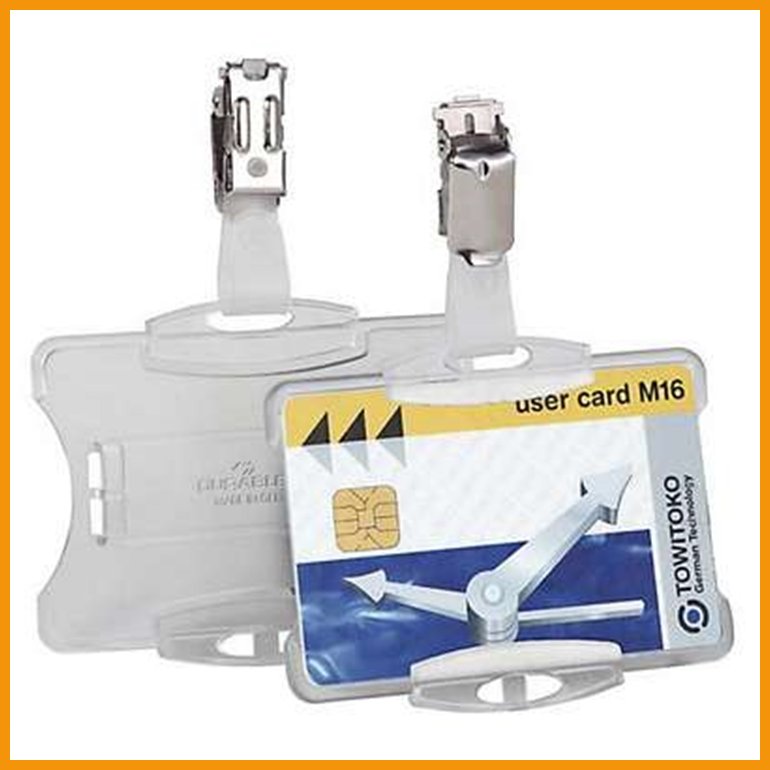 Hinta 63,13€ / 10 kplDurable 8224 on jojolla varustettu kulkukorttikotelo, jonka pidikkeeseen sopivat 54 x 90 mm nimikortit. kaksipuoliseen koteloon saa tarvittaessa kaksi korttia kerralla, ja kortit on helppo vaihtaa. jojossa on sisäänkelautuva 80 cm nauha. pakkauksessa on 10 koteloa.