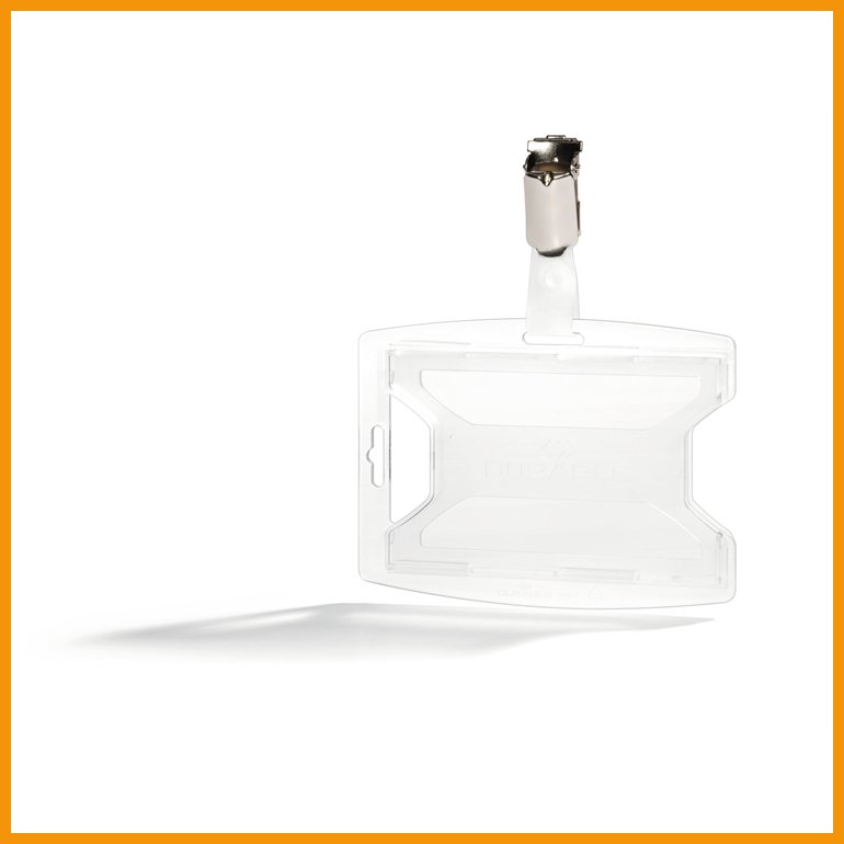 Kahden kortin Durable reXycle -kulkukorttikoteloa voidaan käyttää sekä pysty- että vaakasuunnassa. Viivakoodit ja muut tunnisteet on helppo lukea kirkkaan materiaalin läpi. Minimalistinen, 70-prosenttisesti kierrätysmateriaalista valmistettu kotelo on kokonaan suojattu etupuolelta, mutta avoin taustapuolelta muovimateriaalin säästämiseksi. Sormikolo helpottaa kortin asettamista ja poistamista.Kotelossa on mukana pyörivä metalliklipsi. Voit käyttää koteloa myös jojon tai kaulanauhan kanssa.