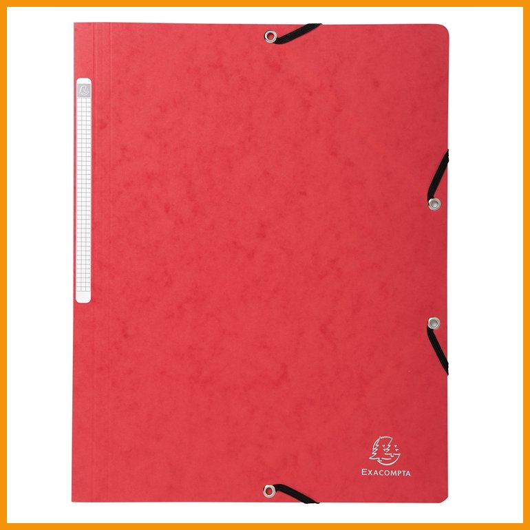 Exacomptan erittäin tukeva punainen kulmalukkokansio ilman läppää ja kuminauhasuljennalla. Seläkkeessä on tarraetiketti. Laadukas kansio on valmistettu vankasta, FSC-sertifioidusta 400 gsm kartongista.Mitat: 320 x 240 mm