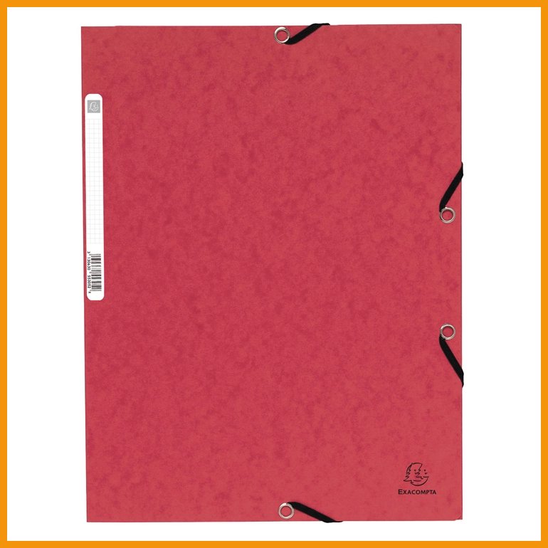 Exacomptan kulmalukkokansiossa on läpät, kuminauhasuljenta ja tarraetiketti selkämyksessä. Laadukas kansio on valmistettu FSC-sertifioidusta 355 gsm kartongista.Mitat: 320 x 240 mm