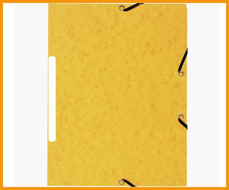 Exacomptan keltaisessa kulmalukkokansiossa on kolme läppää, kuminauhasuljenta ja tarraetiketti selkämyksessä. Laadukas kansio on valmistettu FSC-sertifioidusta 375 gsm kartongista ja sillä on Blue Angel -ympäristösertifikaatti.Mitat: 320 x 240 mm