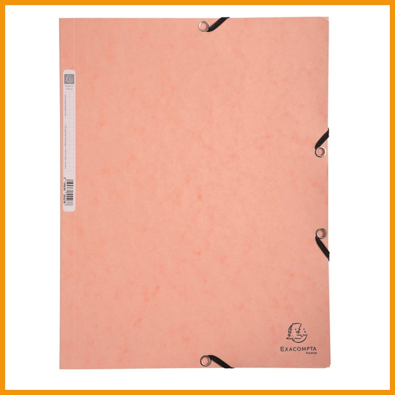 Exacomptan erittäin tukeva kulmalukkokansio kolmella läpällä ja kuminauhasuljennalla. Seläkkeessä on tarraetiketti. Laadukas kansio on valmistettu vankasta, FSC-sertifioidusta 400 gsm kartongista.Mitat: 320 x 240 mm