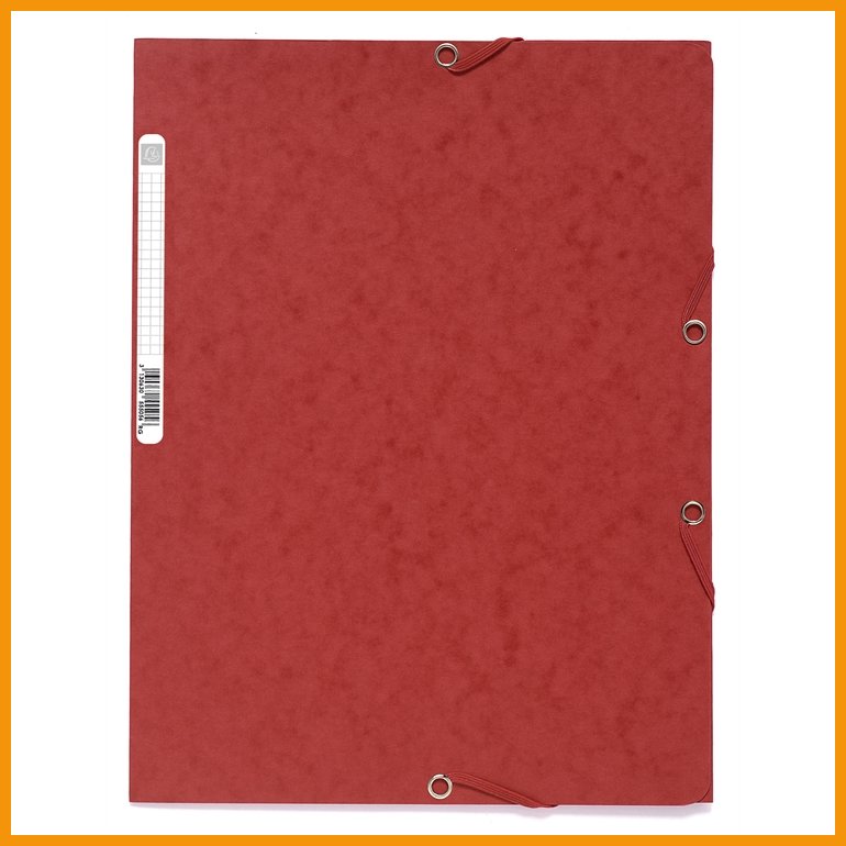 Exacomptan erittäin tukeva punainen kulmalukkokansio kolmella läpällä ja kuminauhasuljennalla. Seläkkeessä on tarraetiketti. Laadukas kansio on valmistettu vankasta, FSC-sertifioidusta 400 gsm kartongista.Mitat: 320 x 240 mm