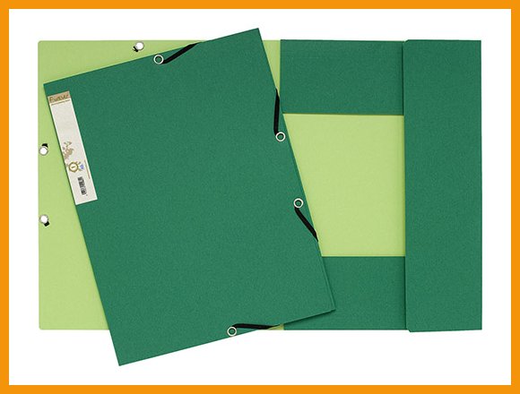 Exacomptan vihreässä kulmalukkokansiossa on kolme läppää, kuminauhasuljenta ja tarraetiketti selkämyksessä. Laadukas kansio on valmistettu 100-prosenttisesti 380 gsm kierrätyskartongista ja sillä on Blue Angel -ympäristösertifikaatti.Mitat: 320 x 240 mm