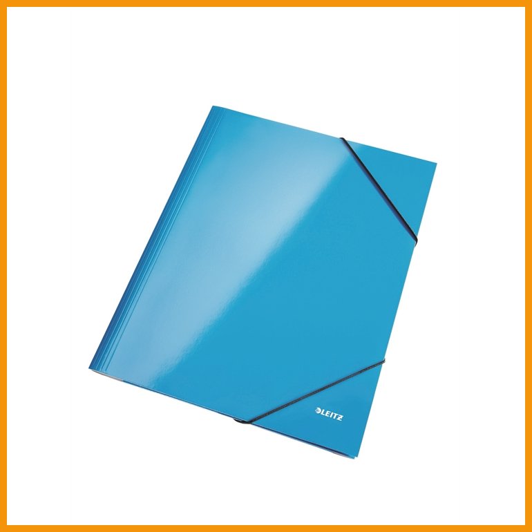 Leitz WOW -sarjan korkealuokkainen kulmalukkokansio on tyylikkään kiiltäväpintaiseksi laminoitu ja koristeltu raikkaan WOW-värin lisäksi geometrisillä kuvioilla. Kansiossa on kolme läppää ja kuminauhasuljenta.Tuote on valmistettu FSC-sertifioidusta kartongista.