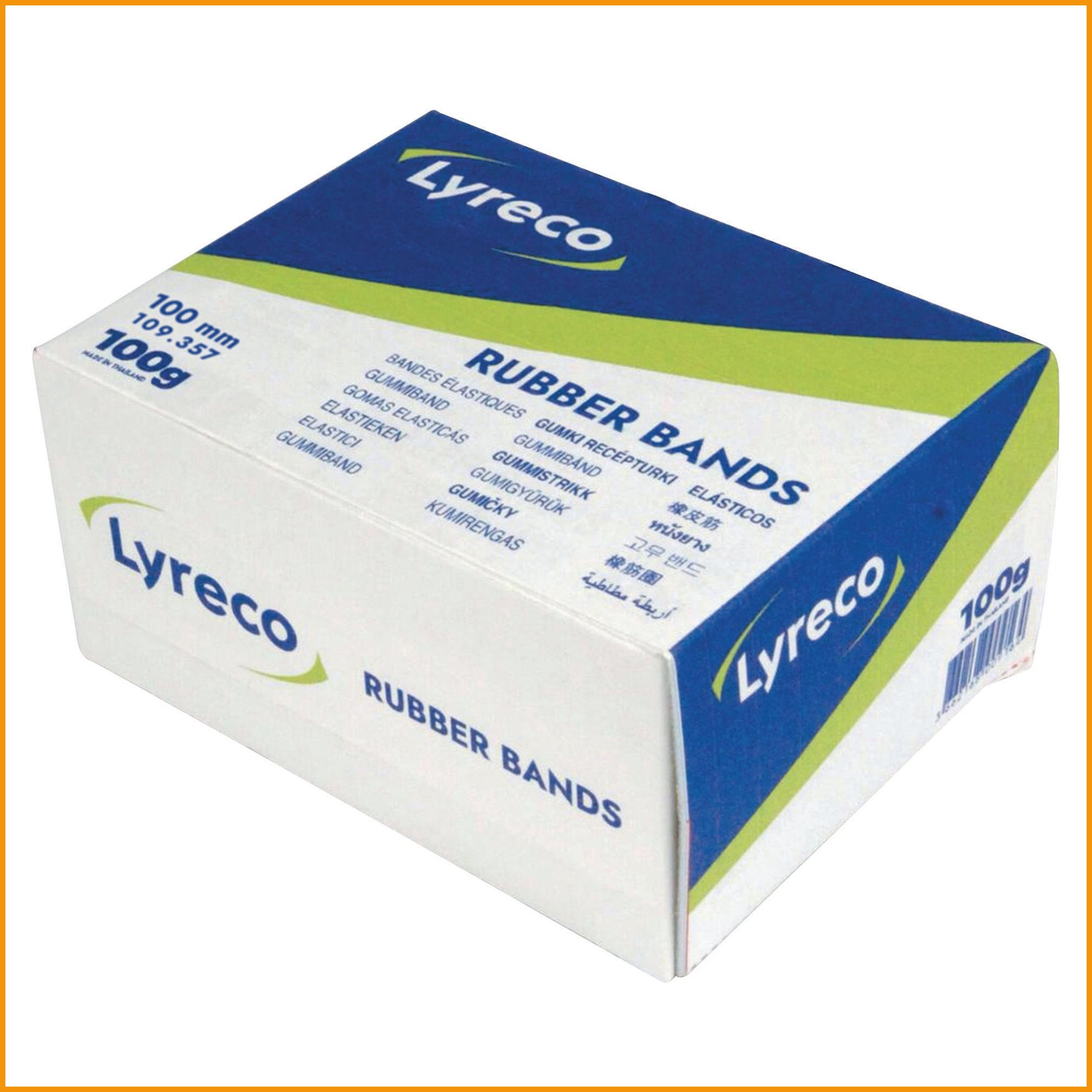 Kuminauha ohut Lyreco pituus 10 cm leveys 2 mm kumilenkit toimitetaan 100g pakkauksessa.