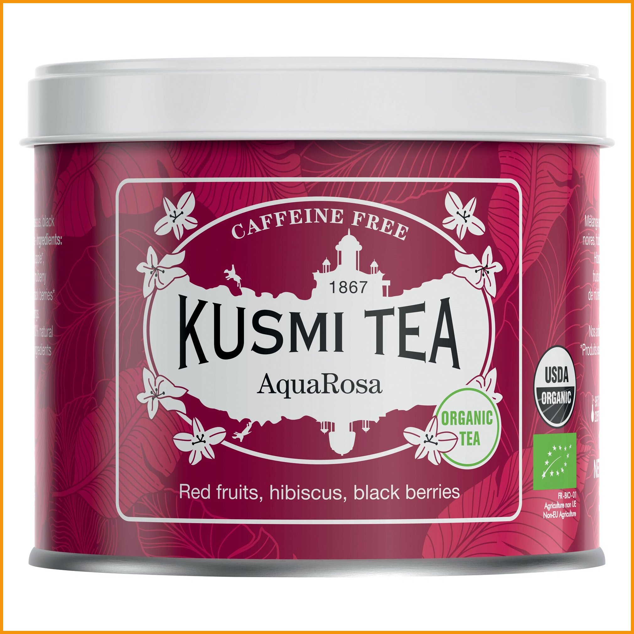 Kusmi Tea luomu aquarosa irtotee 100g metallisella pakkauksella tuotetiedot