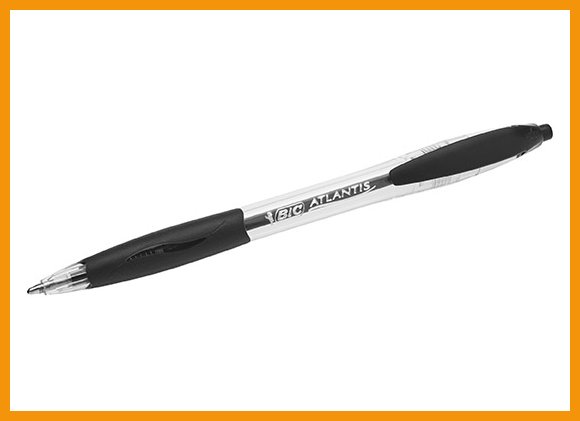Bic Atlantis -kuulakärkikynän kevyesti juokseva muste ja kumipintainen runko tekevät sillä kirjoittamisesta nautinnon. Kynässä on läpinäkyvä runko, painomekanismi ja muovinen klipsi. Muste on arkistokelpoista (ISO 12757-2).Musteen väri: musta