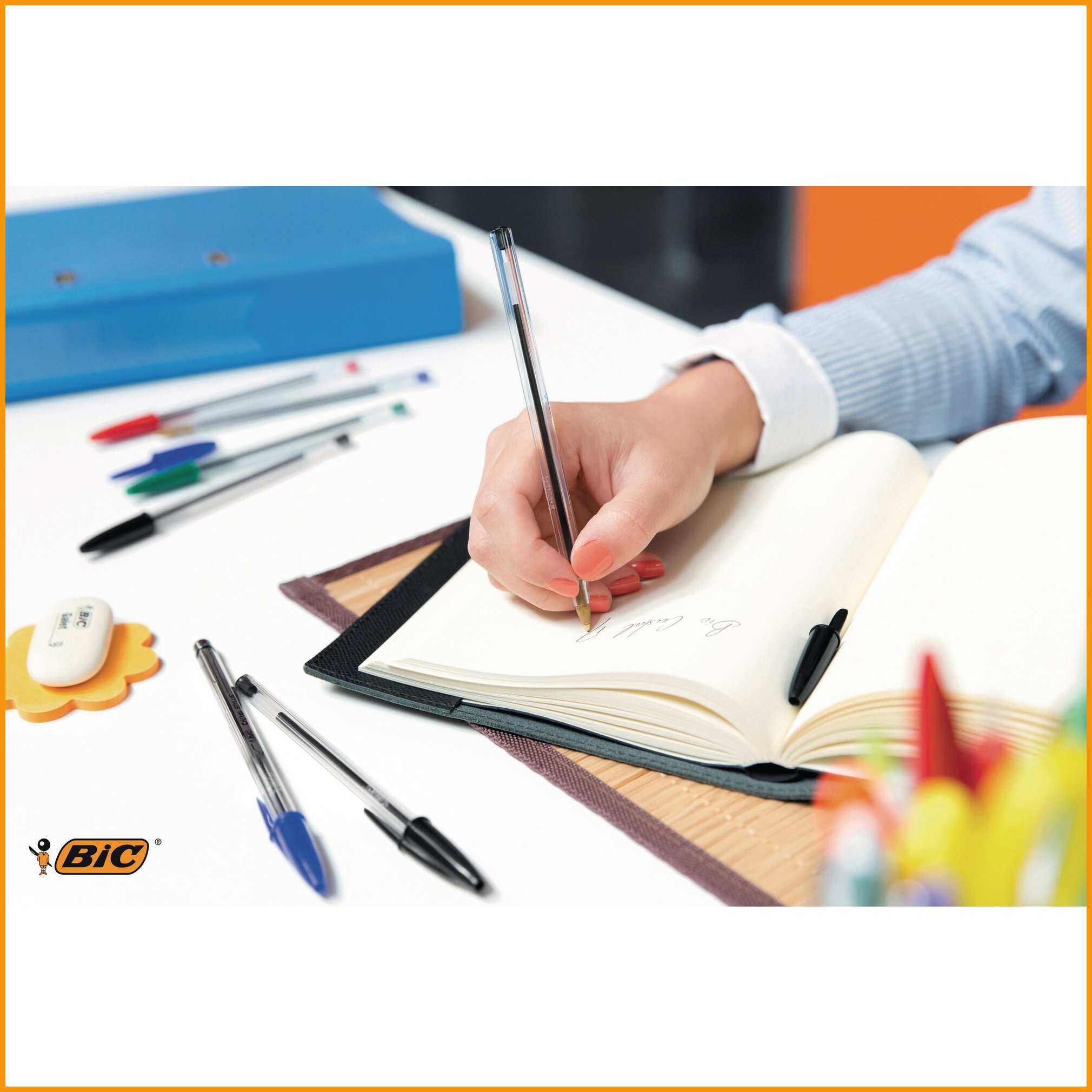 Hinta 0,69€ / kplYmpäristöystävällisesti tuotetun bic orange -kuulakärkikynän arkistokelpoisella (iso 12757-2) musteella kirjoitat jopa 3000 m. musteen värinen korkki ja kärki helpottavat oikean kynän tunnistamista. fine-kärki: kuula 0,8 mm, viivan leveys 0,3 m. myyntierä: 1 pkt (20 kpl) / 50 pkt.