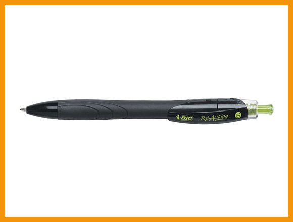 Bic Ecolutions Re-Action -kuulakärkikynä on valmistettu 74-prosenttisesti kierrätysmateriaaleista. Kynän liukkaasti juokseva Easy Glide -muste, jousitettu kärki ja muotoiltu kumipintainen runko tekevät sillä kirjoittamisesta nautinnon. Kynässä on painomekanismi ja muovinen klipsi. Muste on arkistokelpoista (ISO 12757-2).Musteen väri: musta